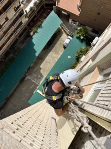 Trabajos en altura mediante cuerdas para intervenir en zonas de difícil acceso con seguridad.